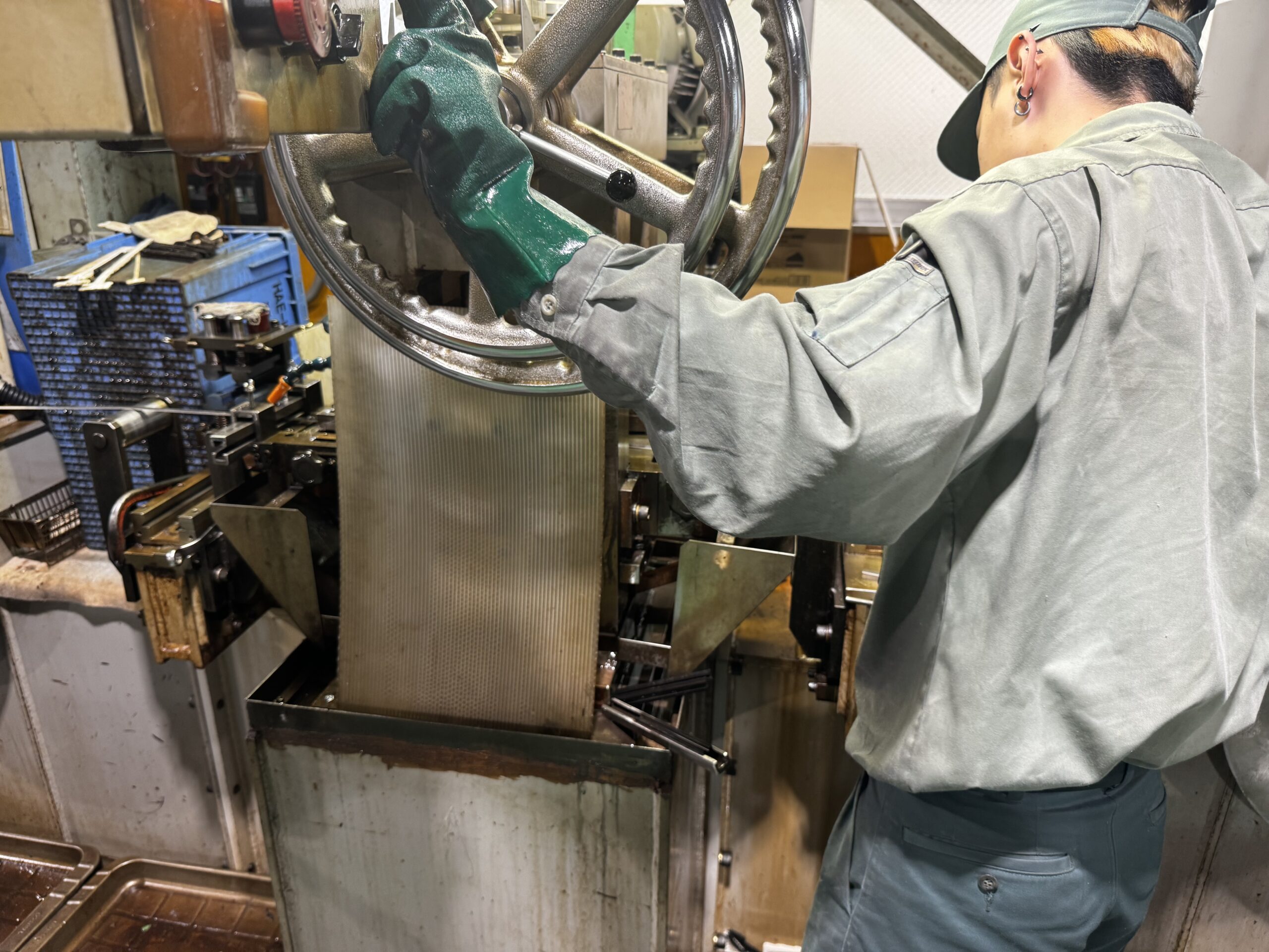 私は、高校の求人票で北光金属を知りました。入社前は、「金属を扱う会社」という大まかなイメージしかありませんでしたが、実際に働いてみると、一つひとつの作業が非常に細かく、丁寧さが求められることに驚きました。仕事で困った時は周りの先輩方がとても優しく、親身にサポートしてくれます。例えば、設備のトラブルが発生して困っているときに「どうした?」「手伝う?」などと先輩の方から声をかけてくれて一緒に対処してもらいました。自分から声をかけづらいことがあっても周りの人が気づいて話しかけてくれることがよくあるので安心して仕事ができます。