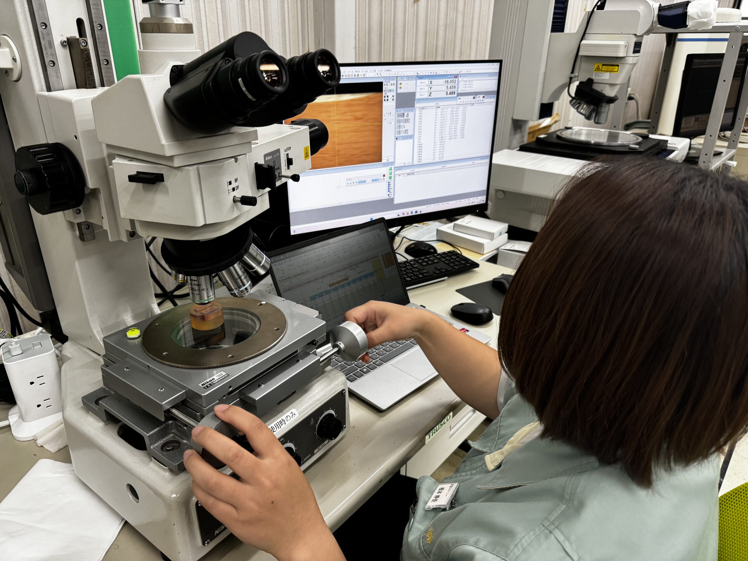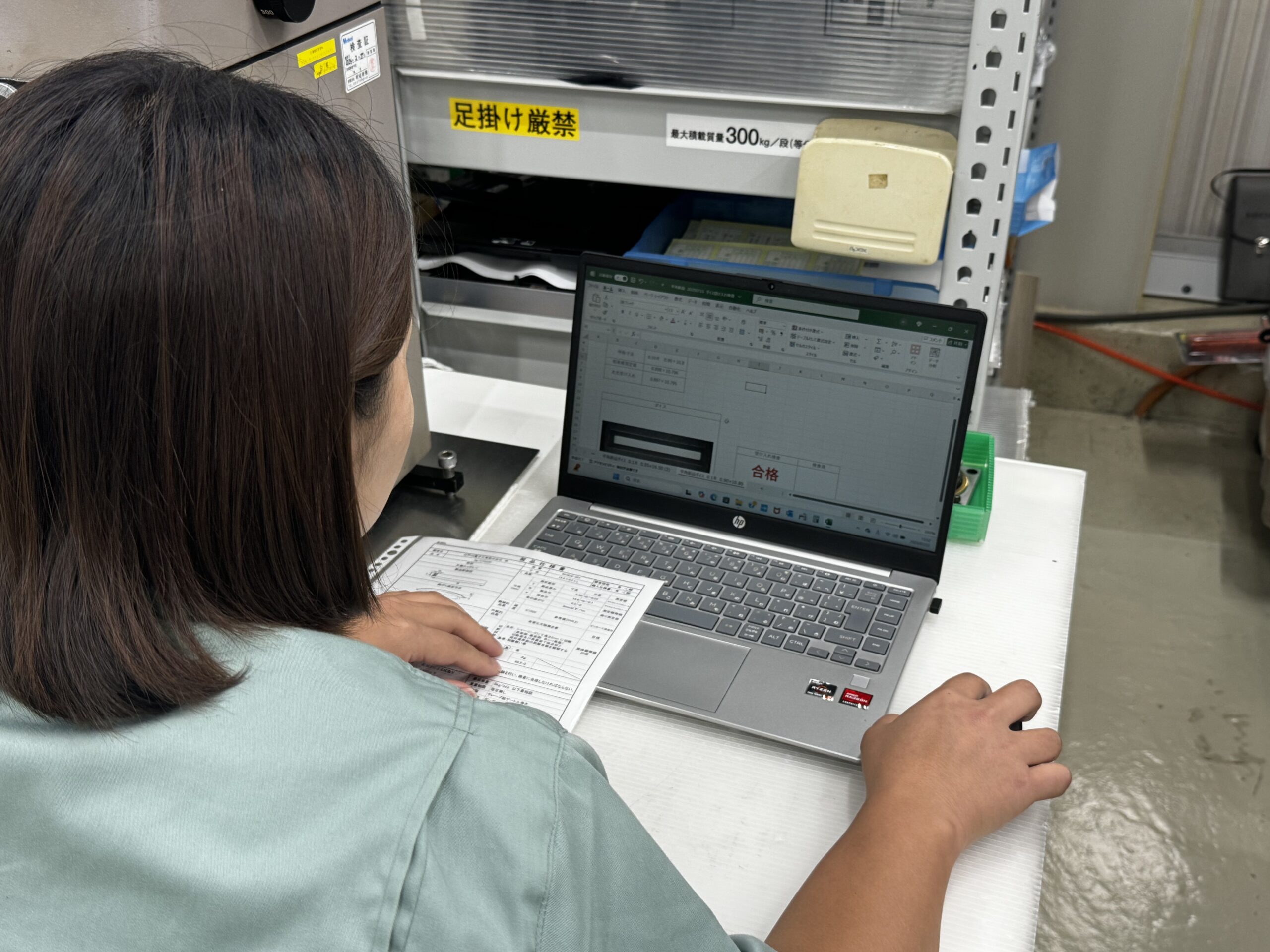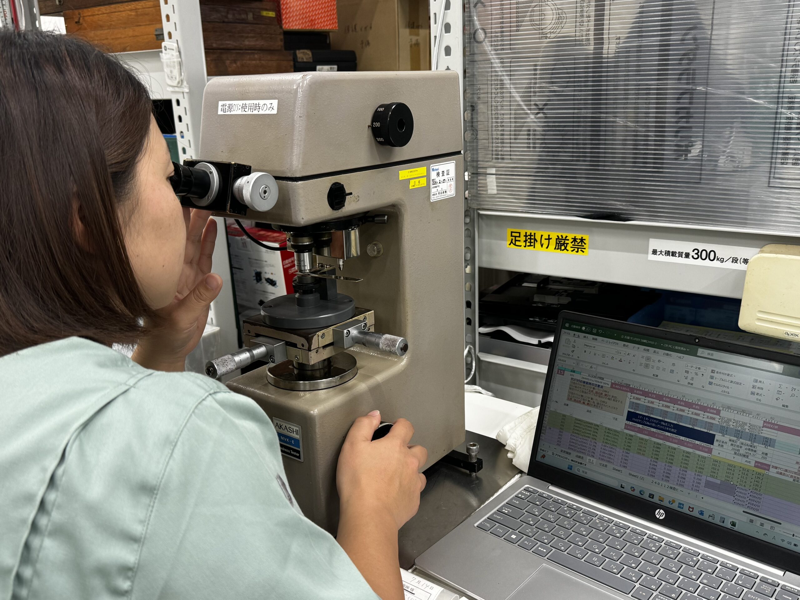 私は、製品の品質を守る品質保証の仕事をしています。材料の受け入れから出荷までの各工程で、製品の寸法や硬さなどを測定・検査することが主な業務です。